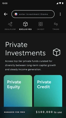 Arta ei ole ainult platvorm; see on kogukond, mis ühendab sind teiste visionääride ja valdkonna ekspertidega. Osale eksklusiivsetel üritustel fondijuhtide ja tippspetsialistidega, et süvendada oma finantsteadmisi ja luua väärtuslikke sidemeid. Jälgi oma portfelli toimivust võrdlusandmete abil, et mõista oma positsiooni turul. Erinevalt traditsioonilistest erapankadest pakub Arta märkimisväärselt madalamaid teenustasusid, võimaldades sul oma varast rohkem säilitada, nautides samal ajal tippkvaliteediga finantsteenuseid. Sinu varad on turvaliselt hoitud sinu nimel BNY | Pershingi juures ja kaitstud kuni 500 000 dollariga SIPC poolt. Arta on ehitatud meeskonna poolt, kes on loonud miljardi dollari väärtusega ja miljardi kasutajaga tooteid, pakkudes sulle meelerahu ja kindlustunnet.