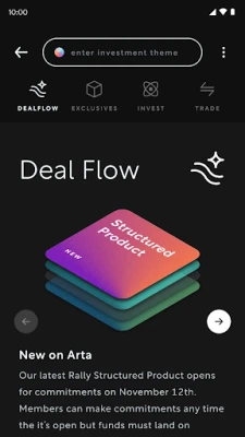 Arta on intelligentne platvorm arukatele investoritele. Saate ligipääsu eliitinvesteeringutele nagu erakapital ja riskikapital, personaalsele tehnoloogiapõhisele kogemusele ning ekspertide nõuannetele. Kasvatage oma vara enesekindlalt Arta abil.