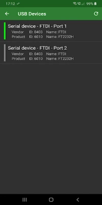 Ühilduvus on selle lahenduse alustala. Rakendus toetab laialdast valikut USB-jada muundureid, sealhulgas populaarseid kiipe nagu FTDI (nt FT232, FT2232), Prolific (PL2303), Silabs (CP2102, CP2105) ja Qinheng (CH340, CH341). Lisaks tagab see ühenduvuse seadmetega, mis rakendavad USB CDC protokolli, hõlmates laialdaselt kasutatavaid platvorme nagu Arduino (ATmega32U4-l põhinevad), Digispark (kasutades V-USB tarkvara USB-d) ja BBC micro:bit (ARM mbed DAPLink püsivaraga). Ühenduse loomiseks peab teie Android-seade toetama USB OTG ehk USB-hostrežiimi, mis on tänapäeval enamikul seadmetel standardiks. Kui aga peaks tekkima probleeme, on soovitatav kontrollida hostrežiimi lubatust oma Androidi tuumas, kasutades spetsiaalseid USB testimise rakendusi.